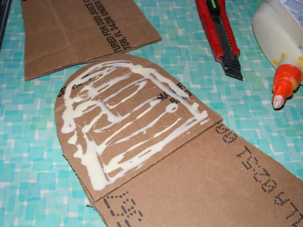 Laminado sobre tres o cuatro capas de cartulina para hacer el talón. Puede pegar piezas de desecho de cartón y armar superponiendo las costuras con la siguiente capa. Para la capa final, utilice una sola pieza de cartón que cubre el talón entero.