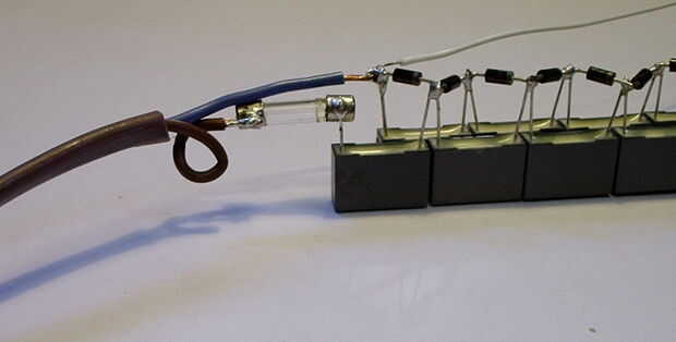También, es alto se recomienda poner este multiplicador de voltaje todo en una caja de proyecto y llene con parafina fundida (cera de vela). Fácilmente puede comprar parafina de la mayoría de tiendas de hobby.