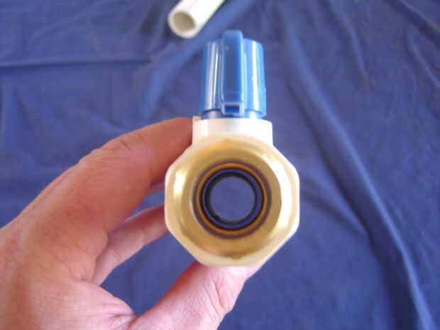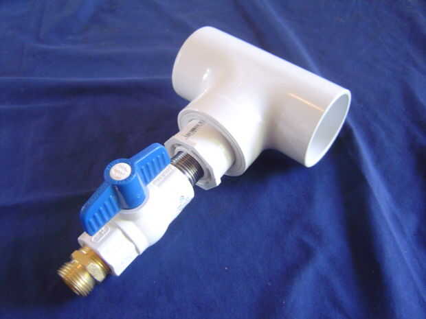 Opté por usar este diseño en otros diseños que encontré en línea debido al volumen de producción. Otros diseños usando diferentes baberos grifos o mangueras reduciría el volumen de agua que salen de los barriles, así como la gravedad alimentado a presión. Con este diseño puedo tener 2 mangueras conexión ambos recibiendo casi el completo 3/4" de diámetro de volumen a través de los hilos de la manguera (ver el cuadro final del volumen a través del montaje de la válvula). El cuello de botella en este sistema no es la válvula de tubería, pero el 5/8" manguera o accesorio en el extremo de la manguera.