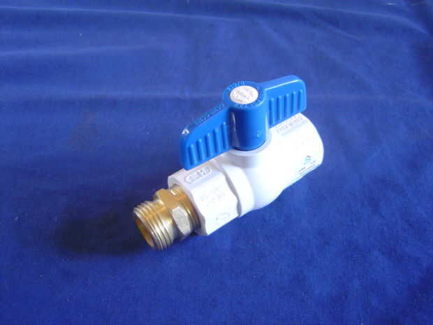 1. Atornille el adaptador 3/4" MPT x MHT (tubo macho rosca para manguera macho del hilo de rosca) en un extremo de la válvula roscada.