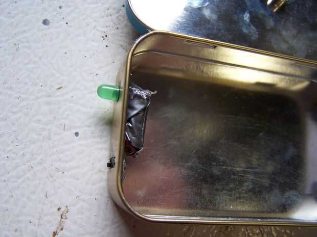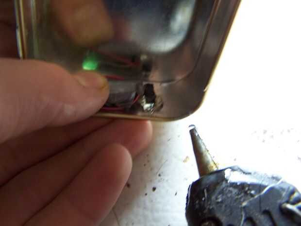 Además, si desea que la luz en el interior, simplemente doblar hacia adentro y taladrar un agujero para se olvide. Pero no olvide cubrir la espalda de ella para que no corto hacia fuera en la lata!