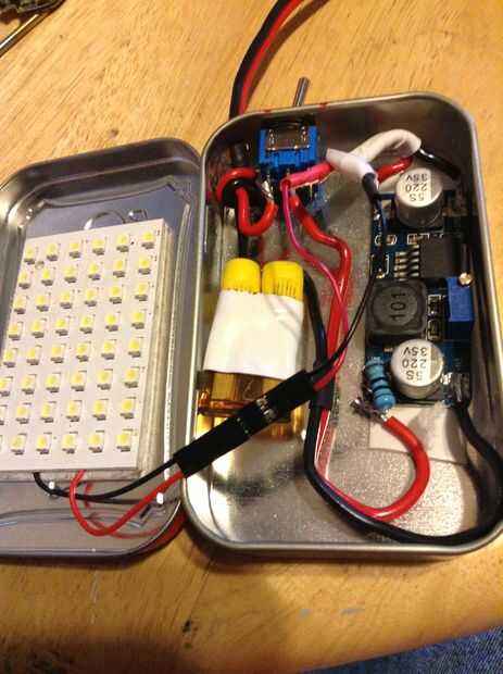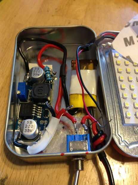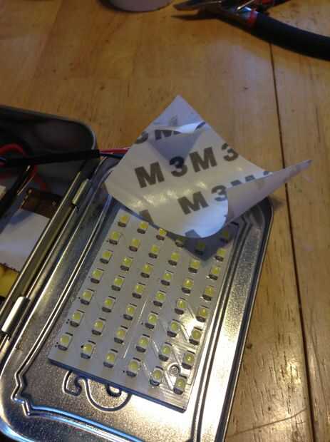 Alinee y pegue la luz en su lugar asegurándose de que está lejos de los bordes superiores de lata y también se borrará el convertidor/fusible cuando se cierra. No quieras tenerlo todo acabado y cierre la tapa y escuchar vaya CRACK!