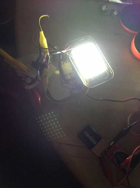 Ahora Conecte el panel LED y después enciende la luz, y (no ves humo lo que significa que enganchó mal), volver a aplicar el medidor y realizar un ajuste final hacia arriba o hacia abajo para conseguir el voltaje bajo carga serie a donde usted lo desee.
