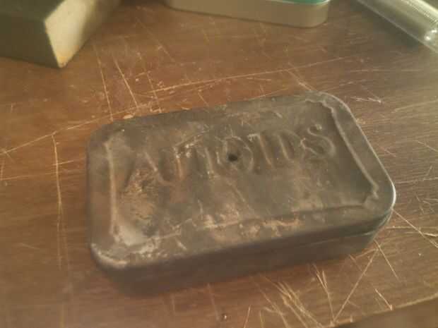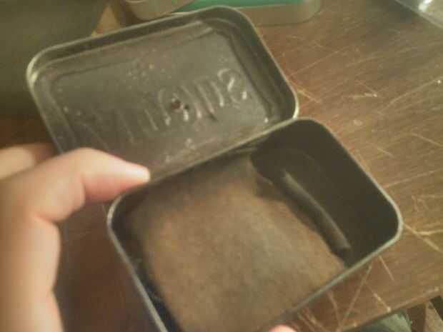 Acabo de tomar un altoid tin y poner un agujero en él con un clavo. ENLACE A OTRO INSTRUCTIVO SOBRE CÓMO HACER EL PAÑO DE CHAR CON ÉL