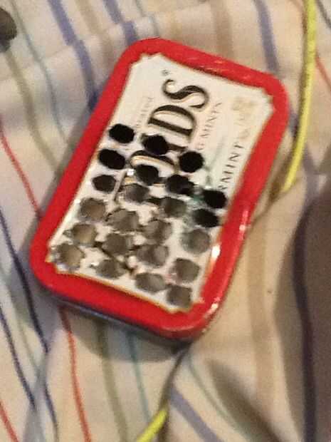 Este detonador utiliza 1 batería del AA, algunos interruptores y unos electrónica simple que se puede tener gratis en cualquier walmart o desarrollo de la foto de la tienda. (además, utiliza una lata altoids, es sólo que mucho más fresco)Esto fue ins
