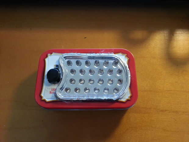 3. Ponga una gota de pegamento caliente alrededor del borde inferior de la lente grande y centro en el borde del reflector grande.