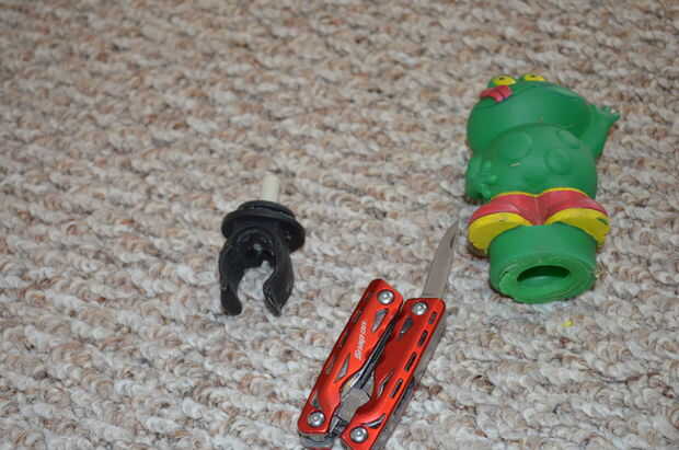 Utilizar cualquier herramientas necesarias para desmontar la bocina así que sólo tienes la bicicleta montar pieza. Tuve que usar una navaja para cortar el froggy de la mina y luego retire las piezas adicionales.
