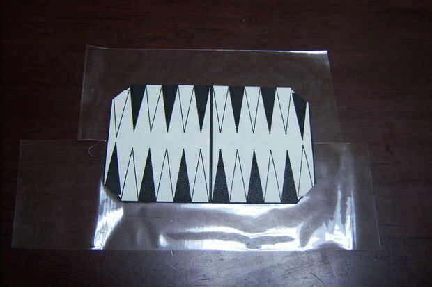 * Fi g. 3 * Usando la cinta de embalaje, laminado primero un lado de un tablero de juego.