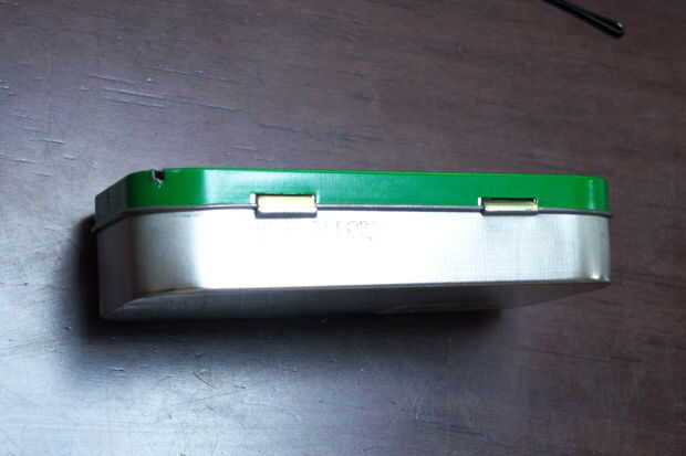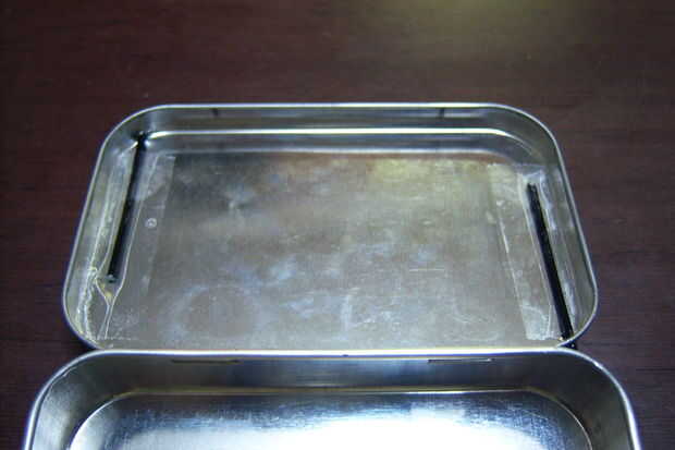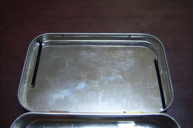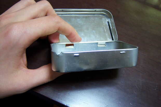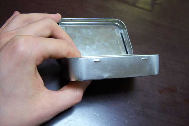 *Pic. 9* Una de las horquillas evitará que la tapa cierre correctamente, por lo que el último paso es hacer una pequeña muesca en la lata para permitir todo para cerrar firmemente. Ubicar la problemática esquina y marque con un marcador.