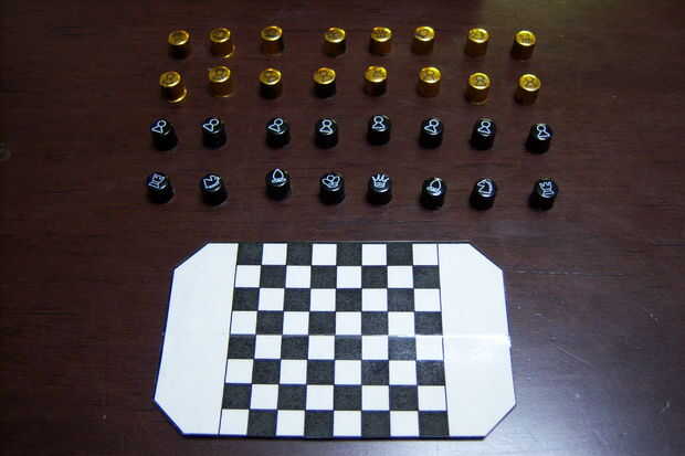 * Fi g. 1 * Ajedrez: salvado mis piezas de ajedrez de otro conjunto de viajes que tenía por ahí. Si no tienes un pequeño sistema para robar de ajedrez, recomiendo la original Altoids ' ible. El autor hizo algunas piezas cool con Fimo.