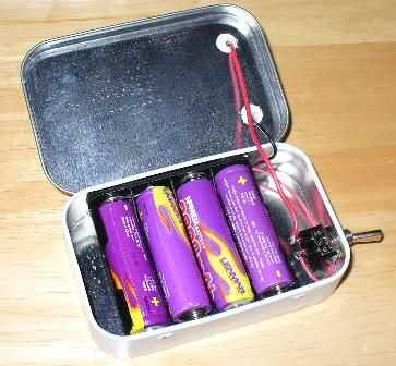 Luego si has elegido la misma caja de la batería te cuenta que está muy cerca del mismo tamaño que la lata Altoids. Deslice el lado con los cables en la caja y aplicar presión en el lado opuesto, a distorsionar el cuadro ligeramente pero se debe ir en, en mi caja de los contactos de la batería fueron empotrados así que había pocas posibilidades de provocar un cortocircuito entre los cables.