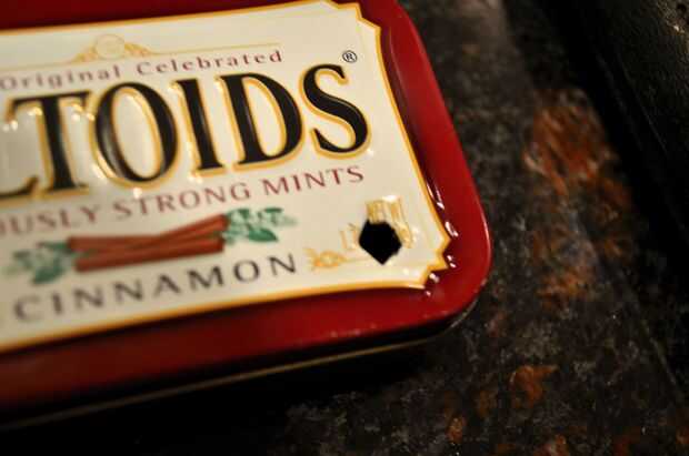 como un artista gráfico, me gusta almacenar hojas extra x-acto en un contenedor de acero para seguridad. Contenedores de Altoids son los mejores... pero entonces ¿qué hacer con los Altoids?Paso 1: necesitarás: Cuchillo x-actoAltoidsshuffle muertopinz