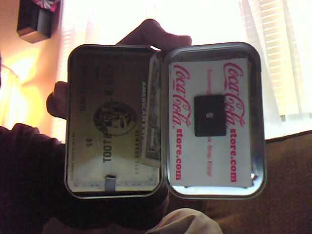 tomó la tapa de una lata de altoid y atado a la espalda del otro. Esto me permite llevar por separado una o dos tarjetas, por ejemplo. una tarjeta de crédito y mi ID, en la parte posterior de la lata. Esa manera que no tener que cavar a través de la