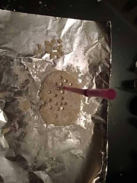 Utilizar una pajita para perforar los agujeros en la goma de sus mentas. Y si quieres algo diferente puede doblar la paja en un corazón lindo corazón en forma de pastillas de menta o utilizar cualquier otro utensilio de corte para cortar cualquier forma diferente como.