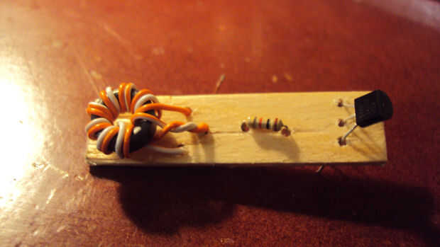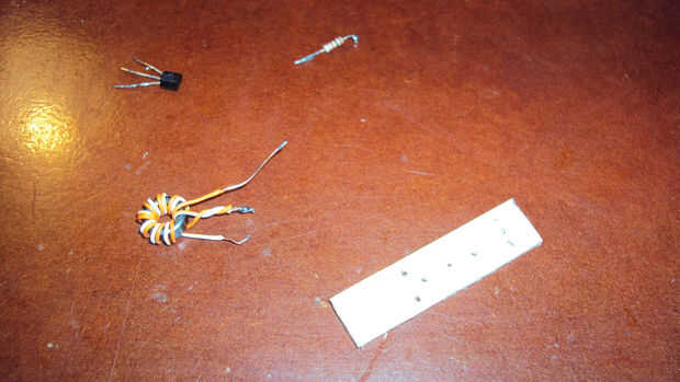 En primer lugar, toma los dos cables exteriores del transistor y doble hacia fuera maneras un poco y doblar hacia atrás la cabeza media. Uno de los cables provenientes de la toroide que está solo; es decir, no dobladas junto con otro cable. Soldadura a un lado de la resistencia. Suelde el otro extremo de la resistencia al plomo del medio del transistor.