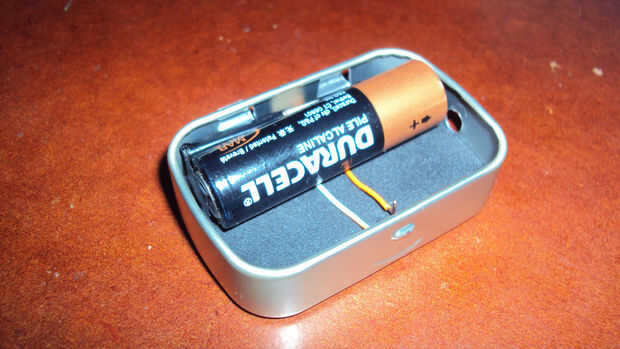 Antes de que cierre hasta necesita poner un poco de cinta otra vez. Poner una capa de cinta entre las resistencias / positivo las piernas y las patas negativas. Esto evita que cualquier cortos cuando cierras la tapa.