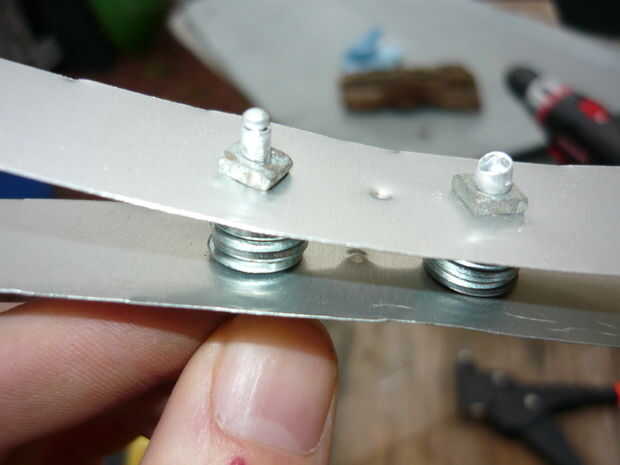 2.) pila de unas arandelas en el eje del remache pop, que terminó con 8