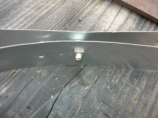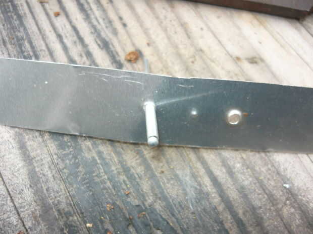 3.) insertar pop-remache a través del orificio correspondiente en la segunda franja de destellar