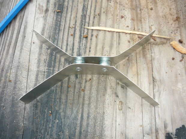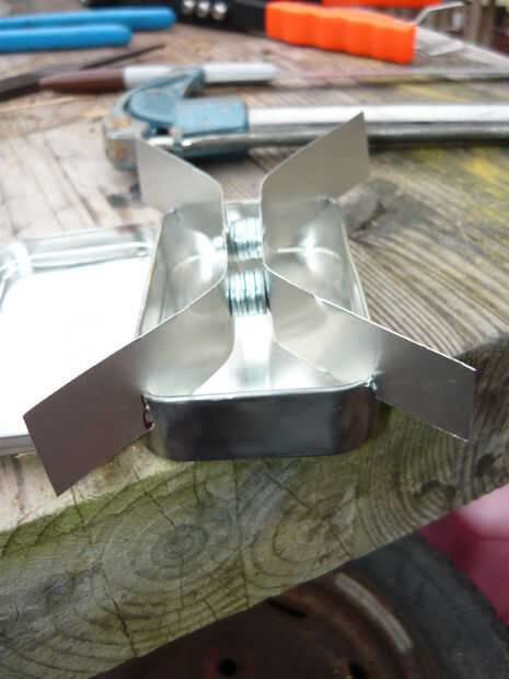 1.) doble apoyo "armas" para que coincida con las esquinas de tu "Altoids lata Alcohol estufa" (como en la imagen).