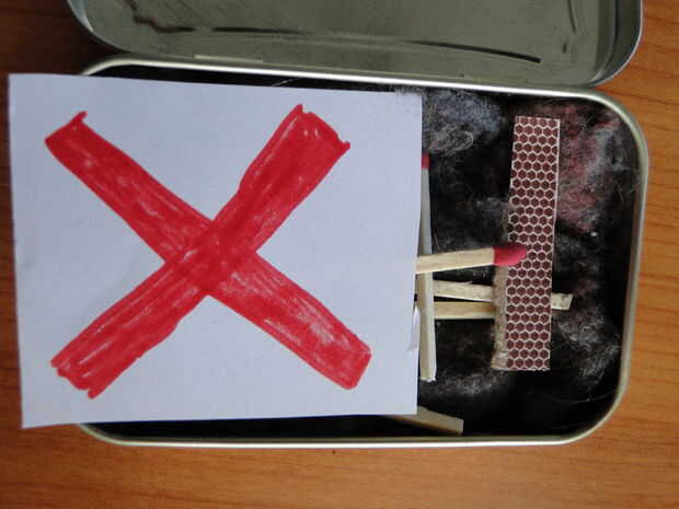 ADVERTENCIA: no coloque el striker para arriba en la lata Altoids porque los partidos pueden luz interior y quemar!!!!!!