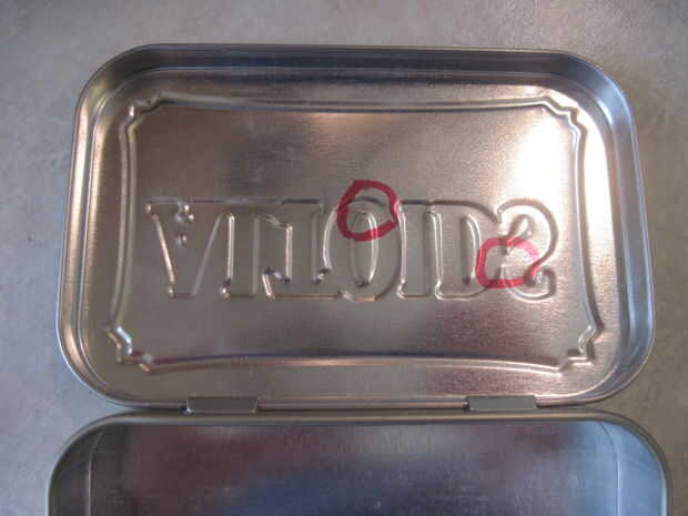 Sostenga el abridor hasta el interior de la tapa de la lata y marque un círculo ligeramente más grande que el botón. Luego perfore un agujero un poco más pequeño que el círculo. Ahora Alinee los botones con los agujeros y compruebe si puede ver el botón todo desde el exterior cuando está sosteniendo el chip.