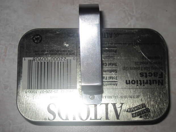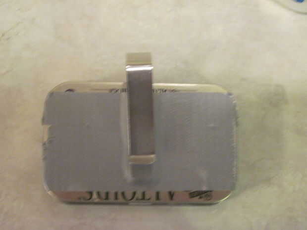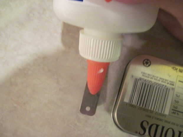 En cuanto a recorte de la lata en la visera, necesita hacer un dos pequeñas ranuras en la parte inferior de la lata con las tijeras. Usted podría también sólo pegamento, pegamento de Elmer o conducto cinta el clip en.