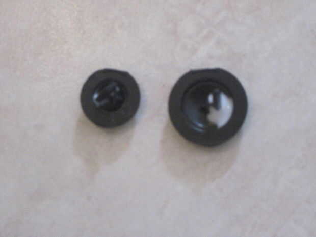Cortar los botones que vas a utilizar en el exterior de la apertura de la carcasa. (El metal perforado de la lata no puede utilizarse para un botón, pero si quieres probar, adelante). Corte un trocito pequeño de plástico de la carcasa para utilizar como separador. Utilice a algunos Elmer o super pegamento para fijar al distanciador a la parte inferior del botón.