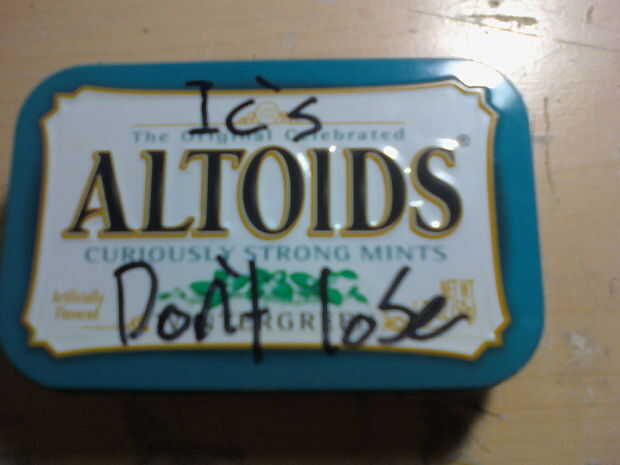 como un artista gráfico, me gusta almacenar hojas extra x-acto en un contenedor de acero para seguridad. Contenedores de Altoids son los mejores... pero entonces ¿qué hacer con los Altoids?Paso 1: necesitarás: Cuchillo x-actoAltoidsshuffle muertopinz