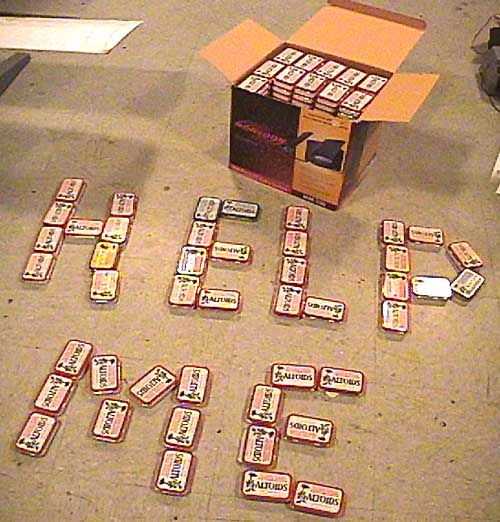 como un artista gráfico, me gusta almacenar hojas extra x-acto en un contenedor de acero para seguridad. Contenedores de Altoids son los mejores... pero entonces ¿qué hacer con los Altoids?Paso 1: necesitarás: Cuchillo x-actoAltoidsshuffle muertopinz