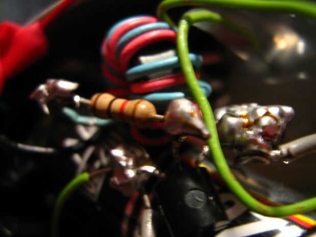 Investigando una paradoja:Recientemente, vi que un "ahorro energético" LED linterna para la venta y sólo utiliza un 1.5 voltios. He comprado esta luz y tomó aparte esperando encontrar una batería, bombilla, interruptor y algún tipo de circuito e