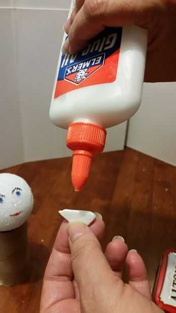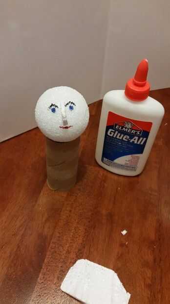Me gusta comenzó haciendo la cara. Tomar una bola de espuma de poliestireno de 2 1/2 pulgada y utilizando pinceles muy pequeños y algunos pintura acrílica hacer cejas, ojos y una boca. Puede que desee en adición de la boca hasta después de que la nariz esté en su lugar; pero eso es su preferencia.