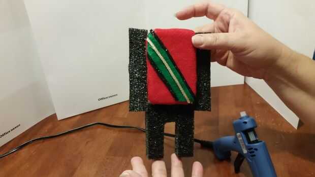 Para colocar las piernas, aplicar pegamento a la base del torso y coloque la espuma de embalaje U o dos piernas de espuma de poliestireno. Verifique que las patas se unen a la parte inferior de la lata y la lata abrir y cerrar.