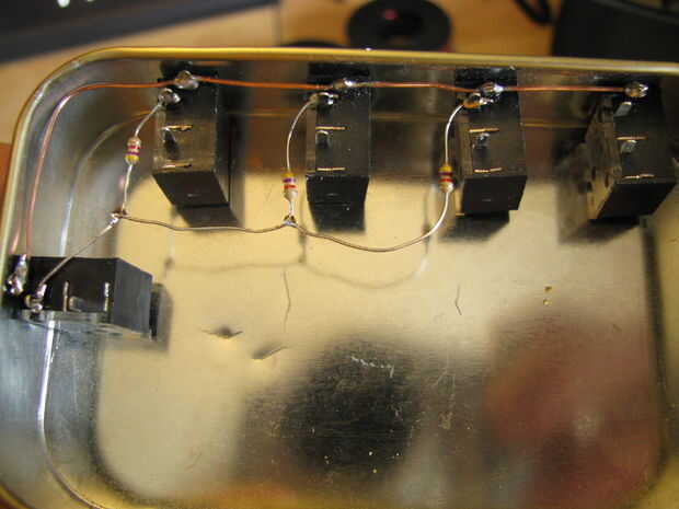 3) Repita hasta que todos los enchufes tienen su ficha media vinculada a la ficha del medio de salida a través de un resistor