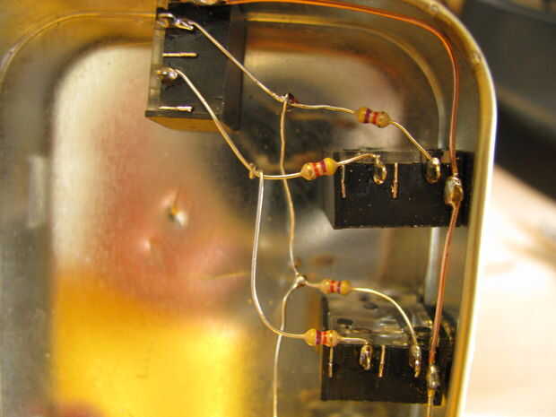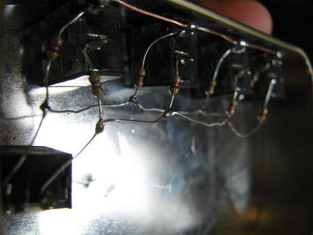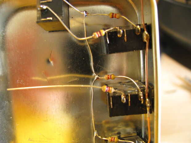 4) después de instalar resistencias todas en pestañas exteriores (canal izquierdo), asegúrese de que no hay shorts/conexiones entre el canal izquierdo y otros cables.