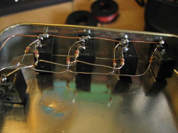 3) Repita hasta que todos los enchufes tienen su pestaña externa vinculada a la ficha de salida exterior a través de un resistor