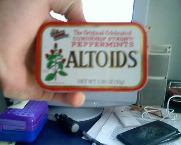 sí, finalmente asumió el reto y me compró algunos Altoids curiosamente fuerte hierbabuenas fuera de ebay... No que me gusta de las mentas (no te preocupes, los amantes de Altoids, fueron a una buena causa (mi abuelo ;-))), sólo quería las latas.De to