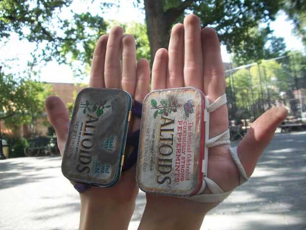 * Nota: estos guantes son para los trucos de deslizamientos bajo nivel. No, bajo ninguna circunstancia, utilice estos guantes para hardcore powersliding cuesta abajo. Estos guantes no son de uso extendido. Si se usan demasiado, el metal en la tapa de lata Altoids disipe y afilar y eventualmente busto de te en medio de una diapositiva. (Ver la última imagen de aclaración) No queremos eso. Así que si usted está realmente en powersliding, consiga algunos gloves.* diapositiva resistente