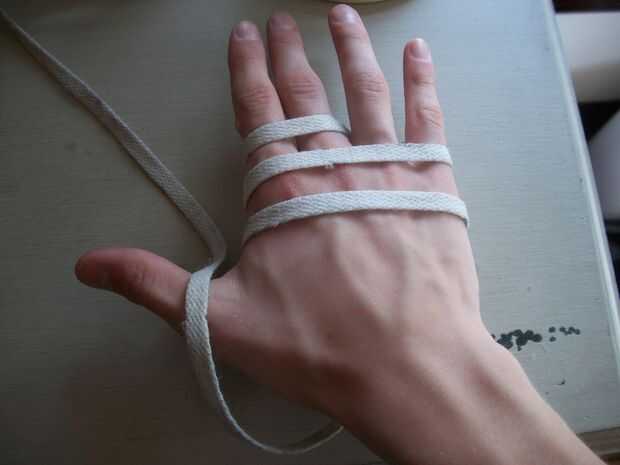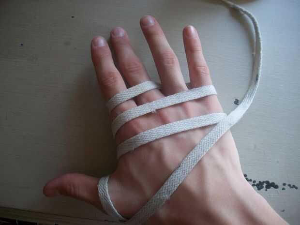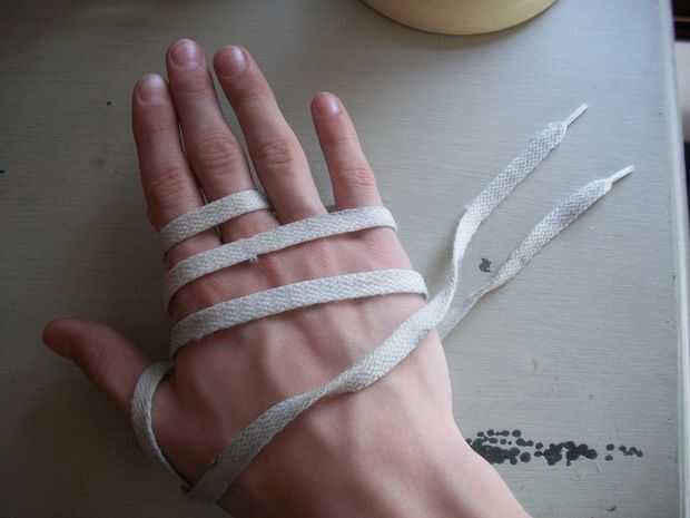 * Cada extremo de los cordones de los zapatos debe ser sobresale en algún lugar así que usted puede atar juntos alrededor de su hand.*