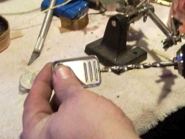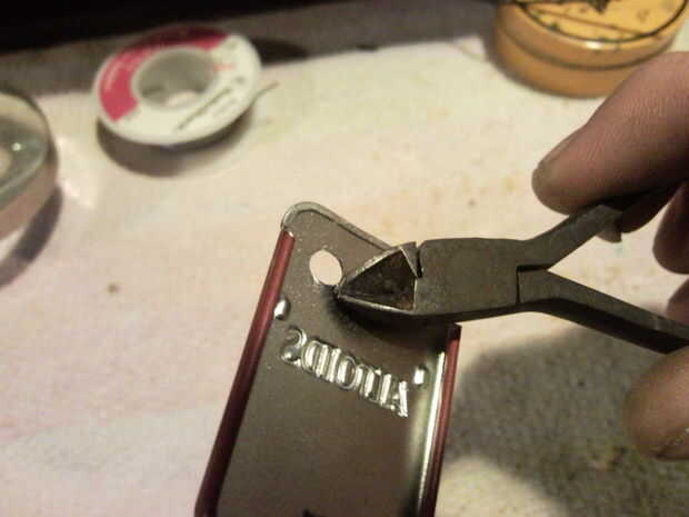 Centro de taladro en el cuerpo y perfore un agujero para que condujo a la forma en como se ve en la foto 3. y un tornillo de banco o abrazadera no trate de usar su mano como un tornillo de Banco!