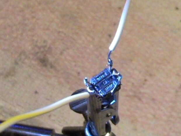 Ahora solde el cable positivo de la masa a un lado del interruptor. (existen 4 terminales en estos switchs tienes que conectarlos diagonalmente) luego corta 2 terminales restantes