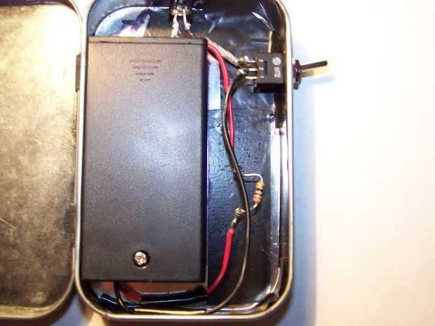Perfore los orificios y colocar el interruptor y el diodo emisor de luz en los agujeros. Luego coloque la batería de la manera quieren y trazar con un rotulador.
