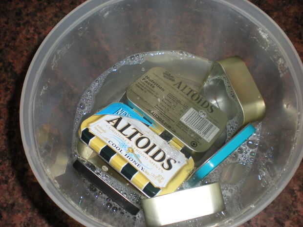 En primer lugar, usted necesitará vacía de cualquier contenido que poseen. Para latas de altoids, esto significa comer todas las mentas. (compartir con amigos y familiares mucho acelera este paso)