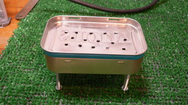 Here is my little, tiny, shiny BBQ! Con toda honestidad, yo quería uno que funcione. Aún todavía tengo que formular una parrilla amañada con una pequeña estatura. Esta cosita linda es para las miradas, aprendí la manera dura. El estaño fundido ta