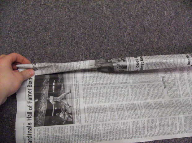 a. tomar su periódico y enrollar a un poco más corto que el interior del contenedor de Altoids.