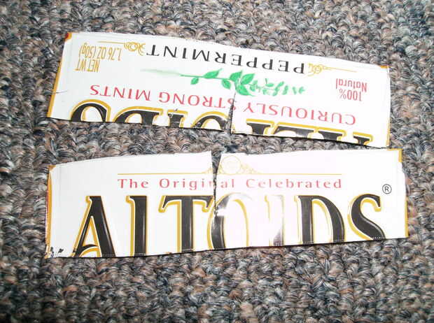 a. tomar la pieza de metal (o en mi caso la tapa extra de Altoids) y cortar dos tiras de ella.