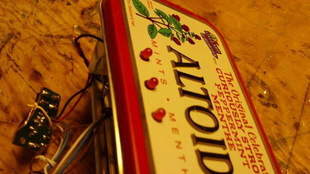 Quería tener el interruptor de encendido y reset accesible desde la parte delantera de la lata. Para ello, el interruptor y el botón deben ser al ras y sentado en posición vertical en la parte inferior de la lata, mirando hacia fuera para entrar en el agujero que finalmente haré en la lata.