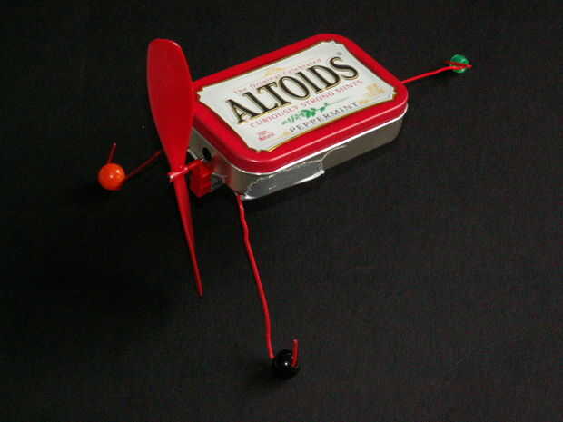 Sostenga la lata Altoids en el piso sosteniendo también la hélice.