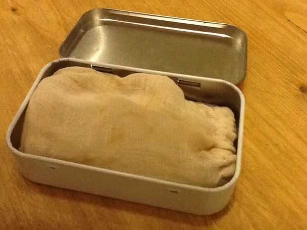 Pop la bolsa usada en la lata Altoids tomar casa lavar y reutilizar.