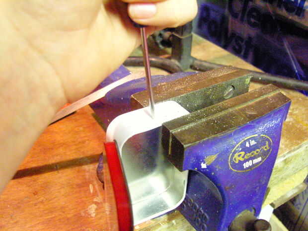 En primer lugar fijar la lata en su vicio, no demasiado apretado aunque o te aplaste!