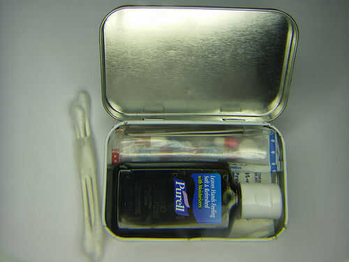 este instructable le mostrará cómo hacer, rápido, fácil, primeros auxilios.Paso 1: Las cosas que necesitará1. un envase de la lata2. tres bolsas de plástico3. curitas4. dentales flossers5. tos6. bastoncillos de algodón7. desinfectante de manos8. trap